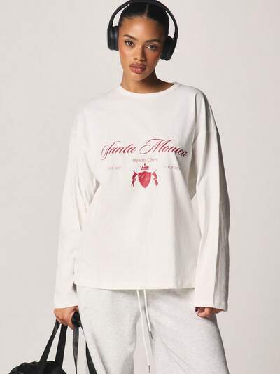 MISSGUIDED ロングスリーブ サンタモニカ スクリプト Tシャツ-40%