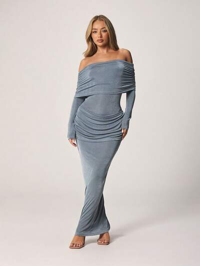 MISSGUIDED ヒップドレープのオフショルダーバルドーマキシドレス-10%