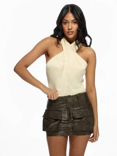 MISSGUIDED クロスフロントデザインのホルターネッククロップトップ-50%