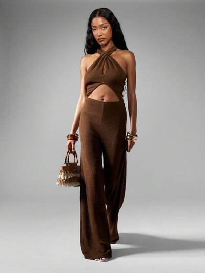 MISSGUIDED デザイナーワイドレッグホルターネックカットアウトジャンプスーツ-50%