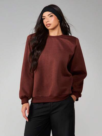 MISSGUIDED ブラウン クルーネック ロングスリーブ スウェットシャツ-10%