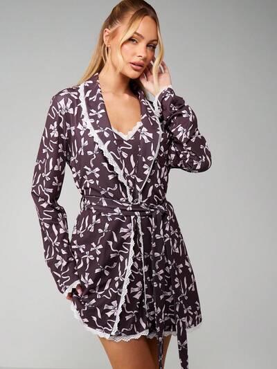 MISSGUIDED 레이스 트림이 있는 플로럴 프린트 랩 로브