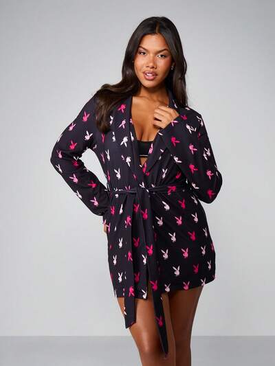 Missguided x Playboy 벨트가 달린 프린트 드레싱 가운