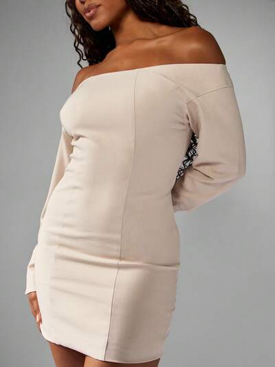 MISSGUIDED 원숄더 반도 바디콘 피티드 넥 타이 디테일 미니 드레스-50%