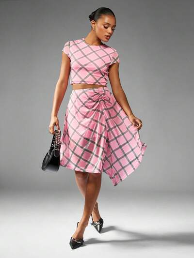 MISSGUIDED 캡 슬리브 크롭 탑과 비대칭 밑단 셔링 스커트-45%