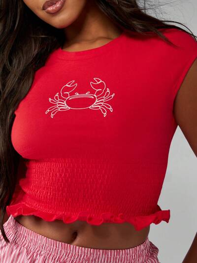 MISSGUIDED 크랩 프린트 스모크 웨이스트 크롭 티셔츠-50%