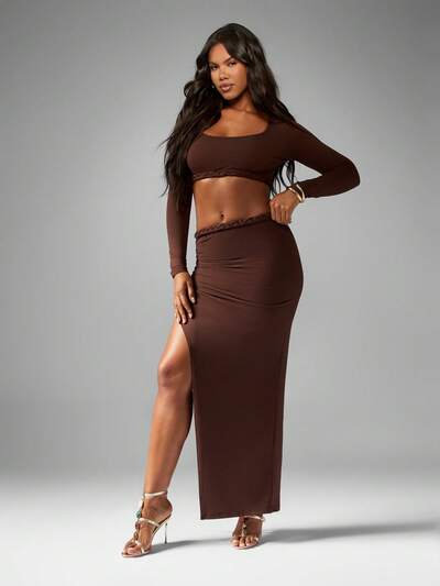 MISSGUIDED 브레이디드 트림 크롭 탑과 맥시 스커트 세트-50%