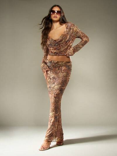 MISSGUIDED 매칭되는 맥시 스커트와 함께한 스팽글 카울넥 탑-40%