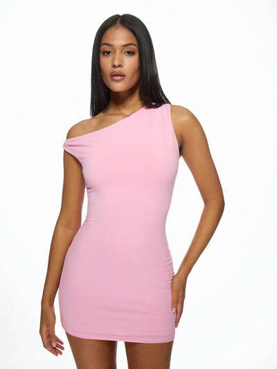 MISSGUIDED 사이드 컷아웃이 있는 비대칭 원숄더 셔링 바디콘 미니 드레스-35%