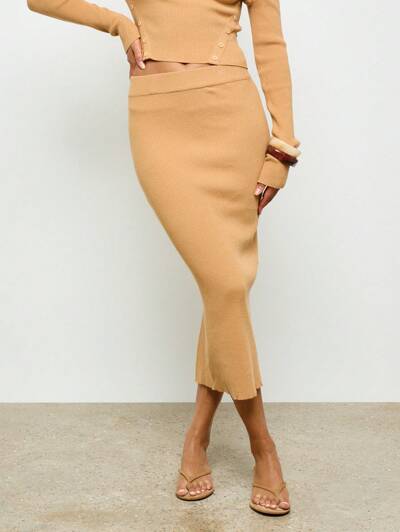 AiiRZ 리브드 니트 연필 스커트 미디 길이 가을 겨울 스트레치 바디콘 오피스 웨어 우아한 전문적인 비즈니스 캐주얼 업무복-50%
