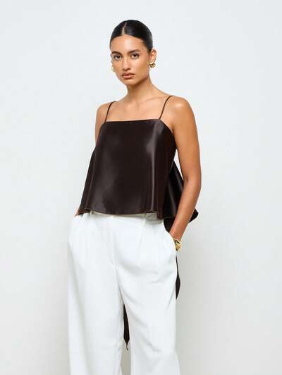 AiiRZ 드레이프 백이 있는 새틴 캐미 탑-10%