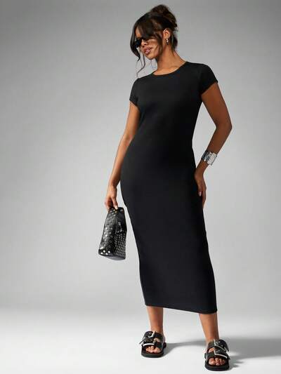 MISSGUIDED 리브드 크루넥 바디콘 미닥시 티셔츠 롱 드레스-50%