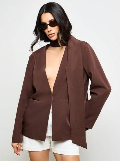 MISSGUIDED 우아한 타이 프런트 프로페셔널 블레이저-30%