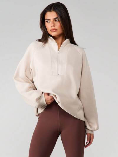 MISSGUIDED 크림 퍼넬넥 쿼터 지퍼 스웨트셔츠-30%