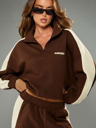 MISSGUIDED 대비되는 소매가 있는 하프 지퍼 오버사이즈 스웨트셔츠-40%