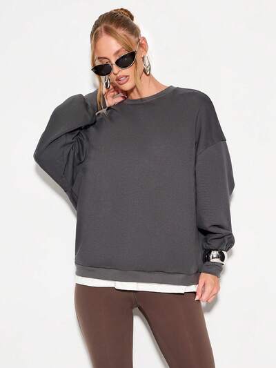 KIZN 캐주얼한 편안함을 위한 크루넥과 드롭 숄더가 있는 오버사이즈 풀오버 스웨트셔츠