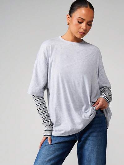 MISSGUIDED 오버사이즈 레이어드 티셔츠 (줄무늬 소매)-15%