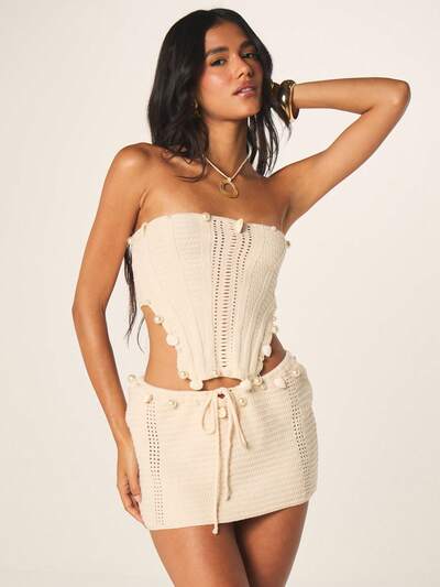 MISSGUIDED 폼폼 장식이 있는 스트랩리스 크로셰 튜브탑-10%