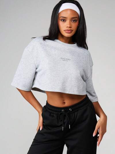 MISSGUIDED 에디션 프린트가 있는 오버사이즈 크롭탑-40%