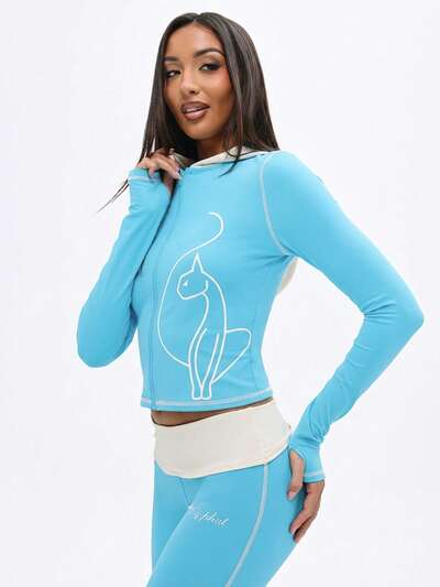 AiiRZ 캐주얼 시크 스타일을 위한 크로스 프론트 디테일과 오픈 백이 있는 드레이피 홀터 탑BABYPHAT 그래픽 프린트 및 스크립트 텍스트가 있는 지퍼업 반팔 하이넥 저지 탑