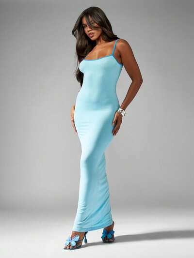 MISSGUIDED 스파게티 스트랩 슬리브리스 바디콘 폼 피팅 플로어 렝스 맥시 드레스-30%