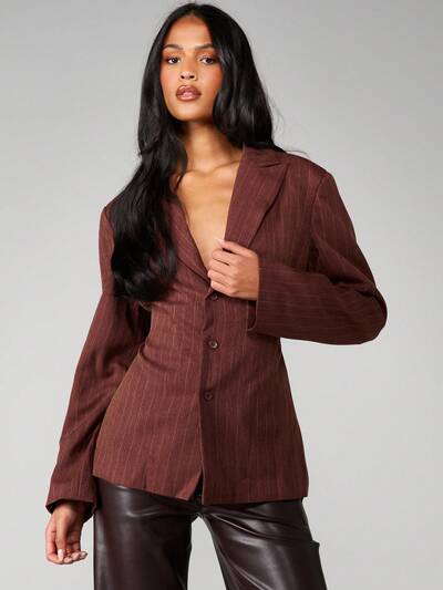 MISSGUIDED 타이백 디테일이 있는 핀스트라이프 블레이저새로움
