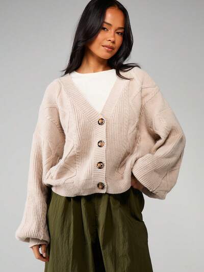 MISSGUIDED 케이블 니트 버튼 프런트 카디건-45%