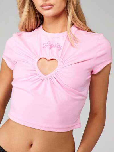 Missguided x Playboy 그래픽이 있는 하트 컷아웃 크롭 티셔츠-40%