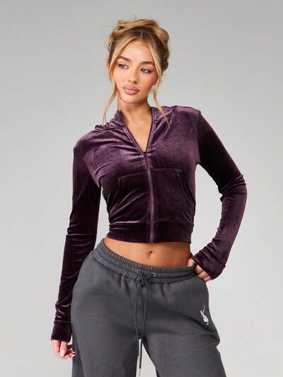 Missguided x Playboy 와플 니트 풀집 크롭 후드티-25%