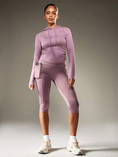 MISSGUIDED 사이드 폰 포켓이 있는 하이라이즈 카프리 레깅스-45%