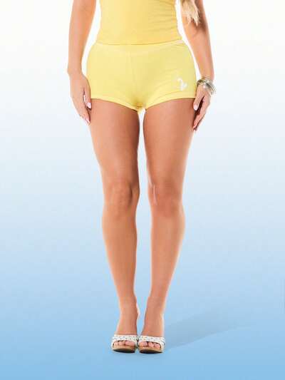 BABYPHAT 로고 프린트와 화이트 대비 트림이 있는 저지 미드 라이즈 피티드 쇼츠 여름 캐주얼 하의-45%