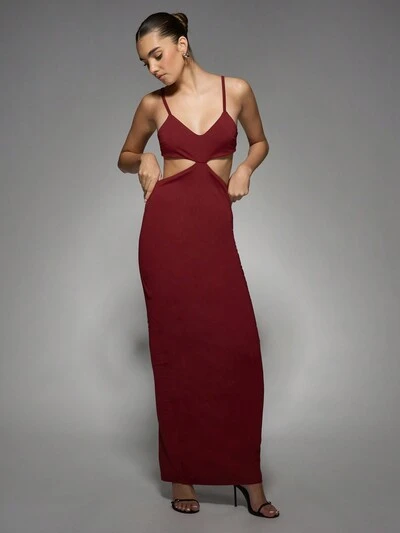 MISSGUIDED 스파게티 스트랩이 달린 우아한 컷아웃 허리 맥시 이브닝 드레스 크리스마스-40%