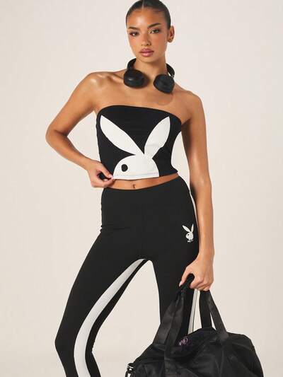 Missguided x Playboy 토끼 로고가 있는 블랙 반도 탑새로움