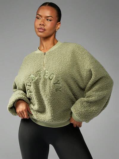 Missguided x Playboy 자수 로고가 있는 셰르파 하프 지퍼 스웨트셔츠-50%