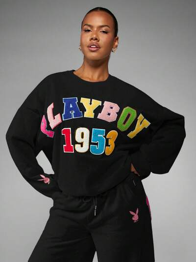 Missguided x Playboy 다채로운 문자 패치가 있는 오버사이즈 스웨트셔츠-35%
