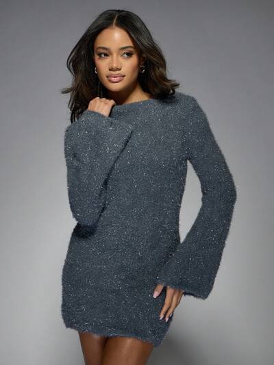 MISSGUIDED 스파클 니트 오픈 백 스웨터 드레스-45%