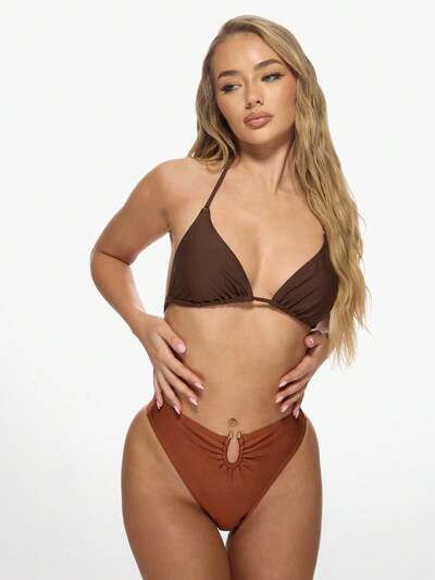 KIZN 삼각 타이 사이드 비즈 비키니 세트MISSGUIDED 셔링 언더와이어 푸쉬업 여성 비키니 세트