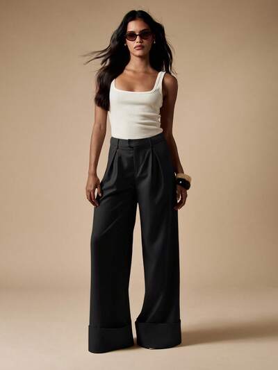 AiiRZ 우아한 와이드 레그 테일러드 트라우저스 전문 사무실 팔라초 팬츠 하이웨스트 비즈니스 포멀 플리츠 프런트 워크 팬츠 이브닝 웨어-40%