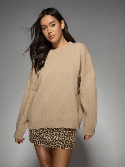 AiiRZ 오버사이즈 케이블 니트 겨울 풀오버 스웨터 긴소매 루즈핏 포근한 니트 점퍼 가을 홀리데이 필수 캐주얼 릴렉스 웨어 골지 트림-40%