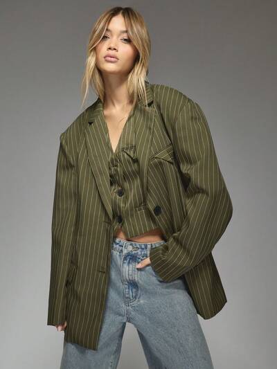 MISSGUIDED 핀스트라이프 구조 더블 브레스티드 블레이저-25%