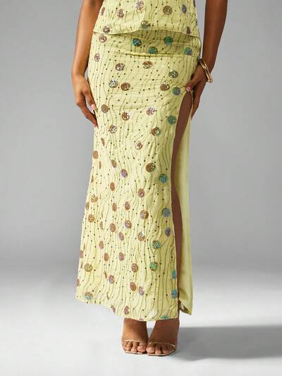 MISSGUIDED 스팽글 장식 맥시 사이드 스플릿 스커트 크리스마스-50%