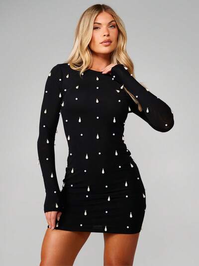 MISSGUIDED 진주 디테일 롱슬리브 바디콘 드레스-35%