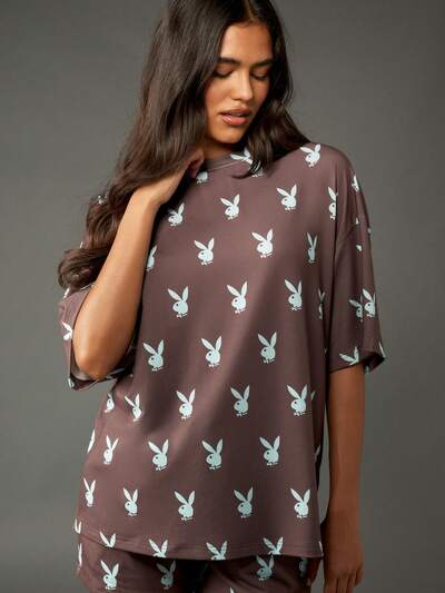 Missguided x Playboy 오버사이즈 캐주얼 베이직 티셔츠에 토끼 그래픽 프린트가 들어있습니다.-30%