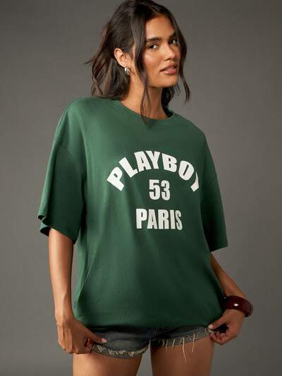 Missguided x Playboy 대학 프린트가 있는 오버사이즈 그래픽 티셔츠-45%