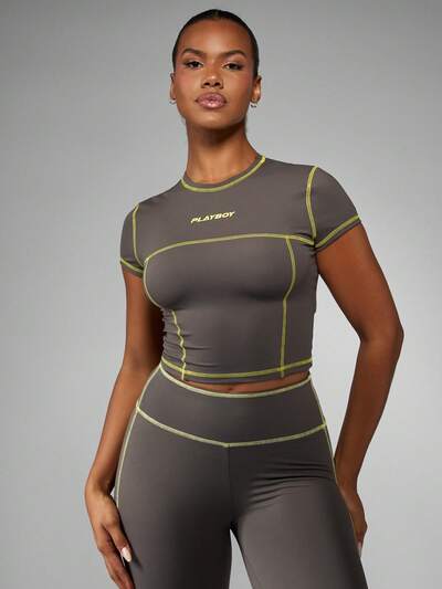 Missguided x Playboy 콘트라스트 스티칭이 있는 크롭 티셔츠-30%