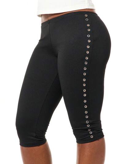 SUMWON WOMEN 메탈 아일렛 사이드 디테일 패션 피티드 미드 라이즈 스트레치 팬츠가 있는 엣지 저지 카프리 레깅스-15%