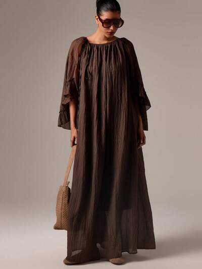 AiiRZ Long Sleeve Crew Neck Bodycon Maxi Dress With Ruched Waist Detail For Evening Occasions