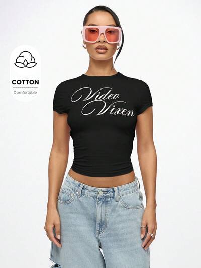 SUMWON WOMEN Video Vixen Short Sleeve Baby Tee Crop Top Y2K Fashion Retro Style Streetwear Urban Club Festival Summer Party Top-10%
