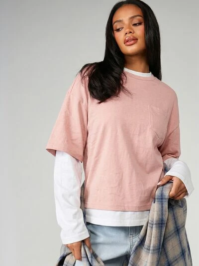 MISSGUIDED Double Layered Oversized T-Shirt With Chest Pocket-5%