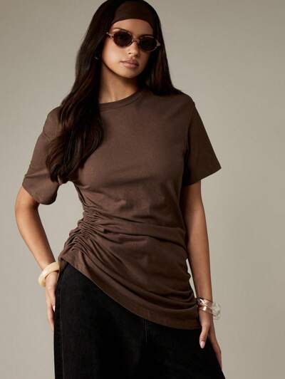 MISSGUIDED Ruched Front Cut-Out Style T-Shirt